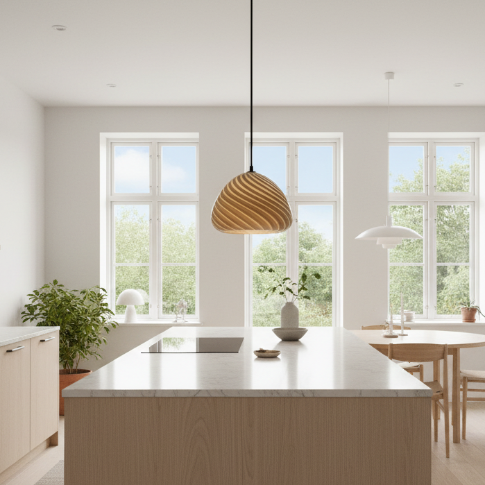 The Spira lamp brings a sense of lightness and quiet joy to the interior. Its softly rounded silhouette is defined by delicate spiral lines that wrap gently around the shade, creating a subtle sense of movement even when the lamp is switched off. When illuminated, Spira casts a warm, atmospheric glow that feels calm, balanced, and inviting.
