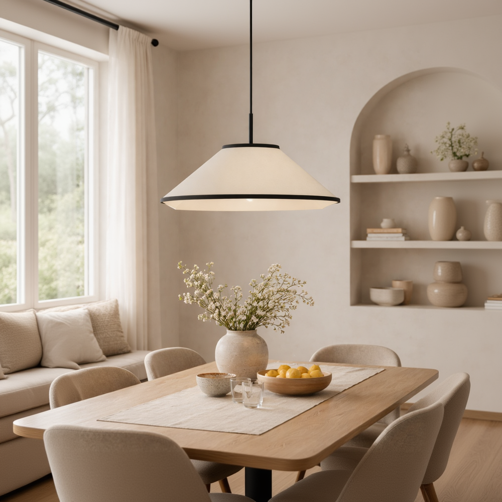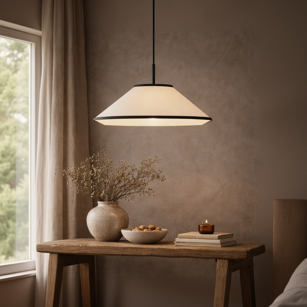 The Twoslope pendant lamp is defined by balance and quiet precision. Its clean, sloping form creates a sense of calm structure, where sharp lines soften into a warm, welcoming presence once the light is switched on. The gently diffused glow spreads evenly, bringing clarity and comfort to the space without harshness.